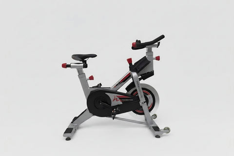 The Freemotion S11.8 is a commercial-grade indoor cycle featuring magnetic resistance, a Gates Carbon Drive belt system, and a high-inertia, perimeter-weighted cast-iron flywheel for a smooth, low-maintenance ride. Designed for durability, it includes a welded steel frame, dual-sided SPD pedals, and extensive seat/handlebar adjustments to fit most users.