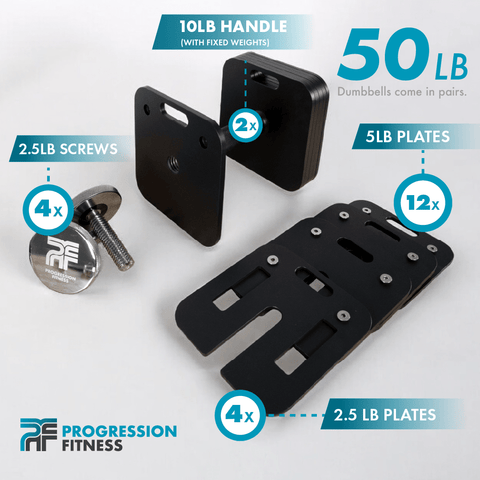Progression Fitness Adjustable Dumbbells - 10 to 50lbs