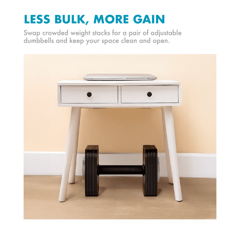 Space Saving – Replace 10 sets of fixed dumbbells with one pair.