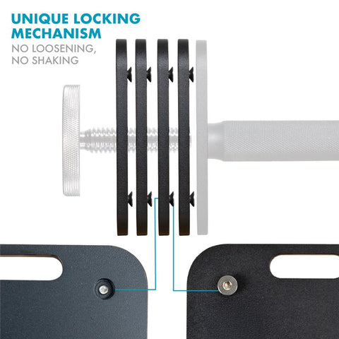 Compatible with both 10–50 lb and 10–90 lb dumbbell sets