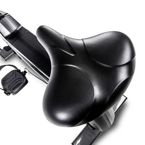 A 30 lb (14 kg) flywheel with a 12:1 pedal-to-flywheel ratio ensures smooth and consistent motion, while the oversized cushion seat with 11 vertical adjustment positions provides superior comfort and support.